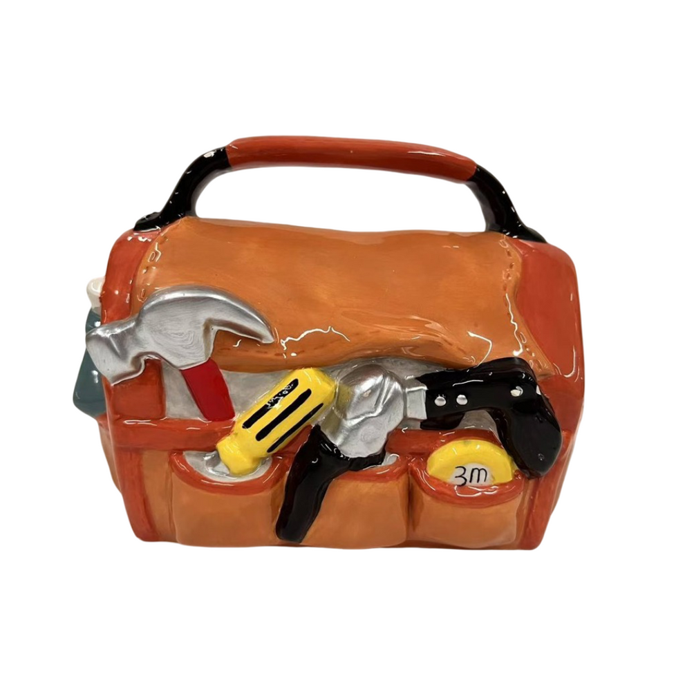Spaarpot keramiek werktas oranje 18,3x10,8x13,7cm