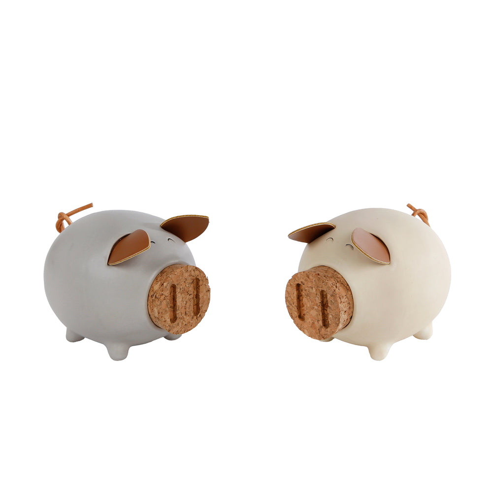 Piggy bank "Pig" cream/beige 2 assorted earthenware 12x9.5x9cm