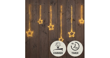 STAR CURTAIN WIRE TRANSPARENT 364L/200X80CM LED CLASSIC WARM 10 STRANDS/STARS - 5M STARTING CORD - IP44 TRANSFORMER ON / 8/16H TIMER / OFF / DIMMER