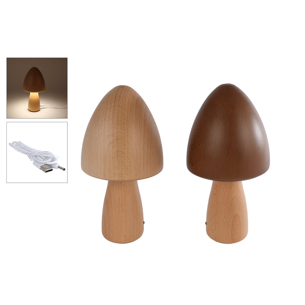 Rechargeable table lamp "Mushroom" beige/brown, 2 assorted wood, 9x9x18cm