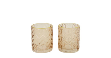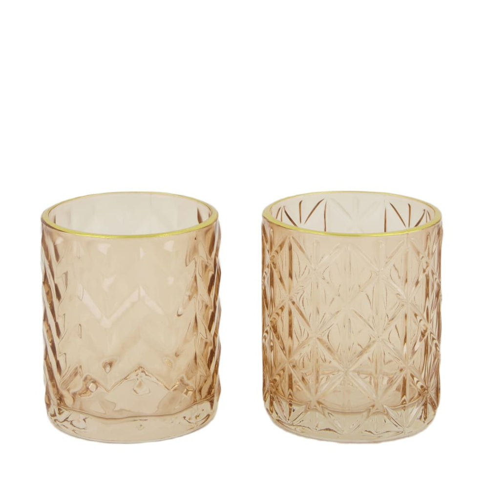 Tealight holder glass 8.5x8.5x10cm 2 Light brown mix