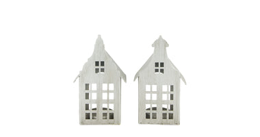Metal tealight holder, house shape, 10x7x18cm, mixed silver finish.