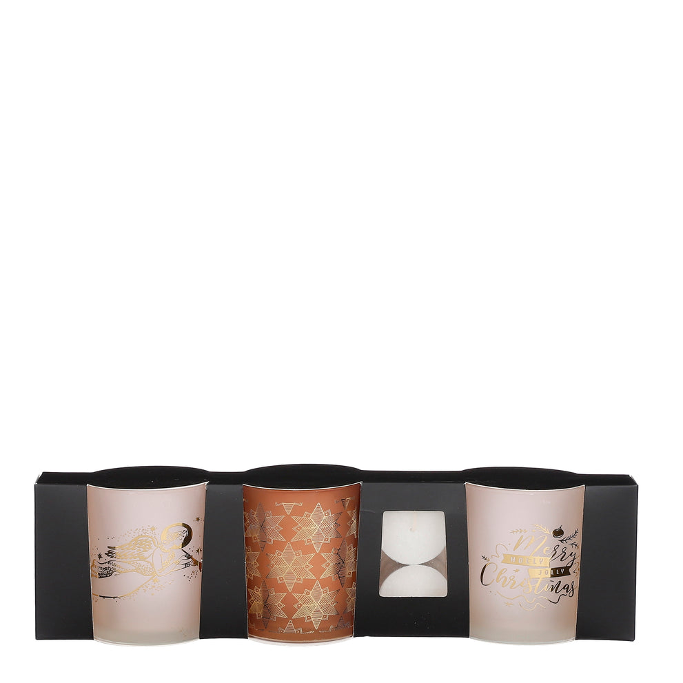 Tea light holder off-white brown set of 3 incl. tea light - h8xd7cm