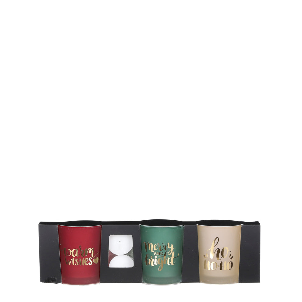 Tea light holder red green off-white set of 3 incl. tea light - h8xd7cm