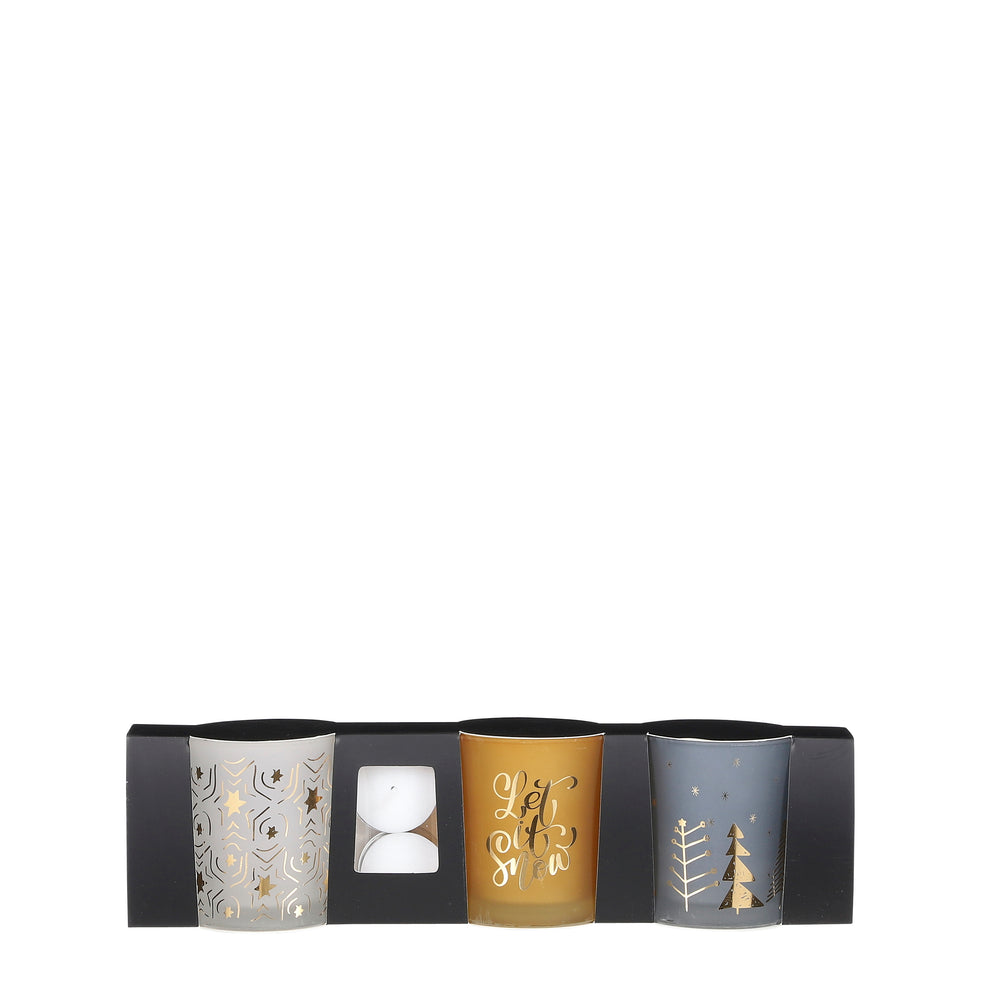 Tea light holder white gold blue set of 3 incl. tea light - h8xd7cm