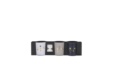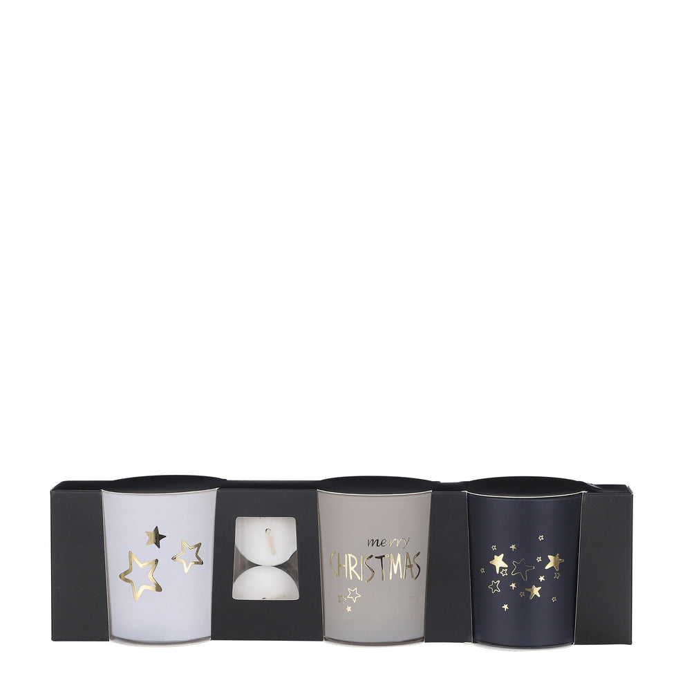Tea light holder white gray black set of 3 incl. tea light - h8xd7cm