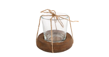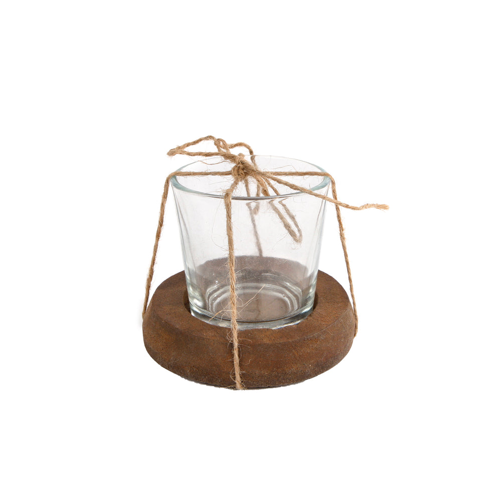Tealight "Maro" clear/natural glass/wood 7.5x7.5x7cm