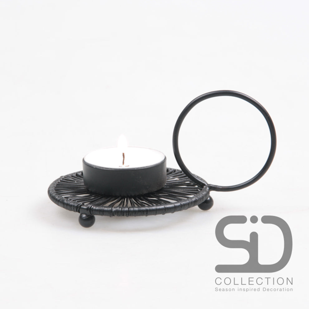 TEA LIGHT HOLDER WIRE METAL BLACK 11X8X6 CM