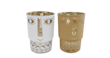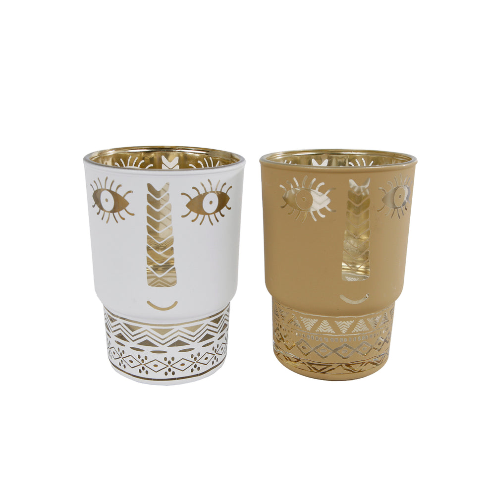 Tea light holder "Face" 2 assorted glass 6.8x6.8x9.5cm