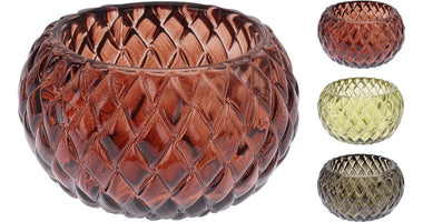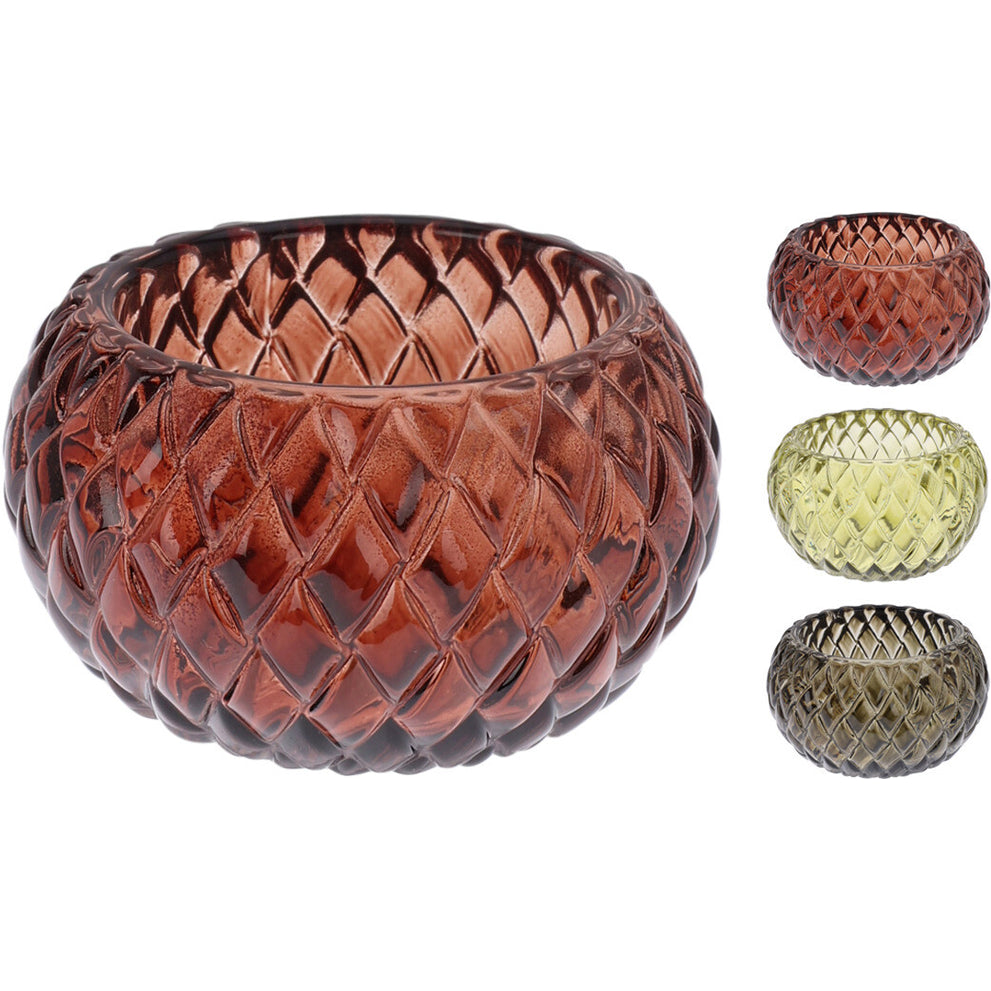 TEA LIGHT HOLDER GLASS DIAMOND PATTERN D7.5 H4.4CM 3 ASSORTED