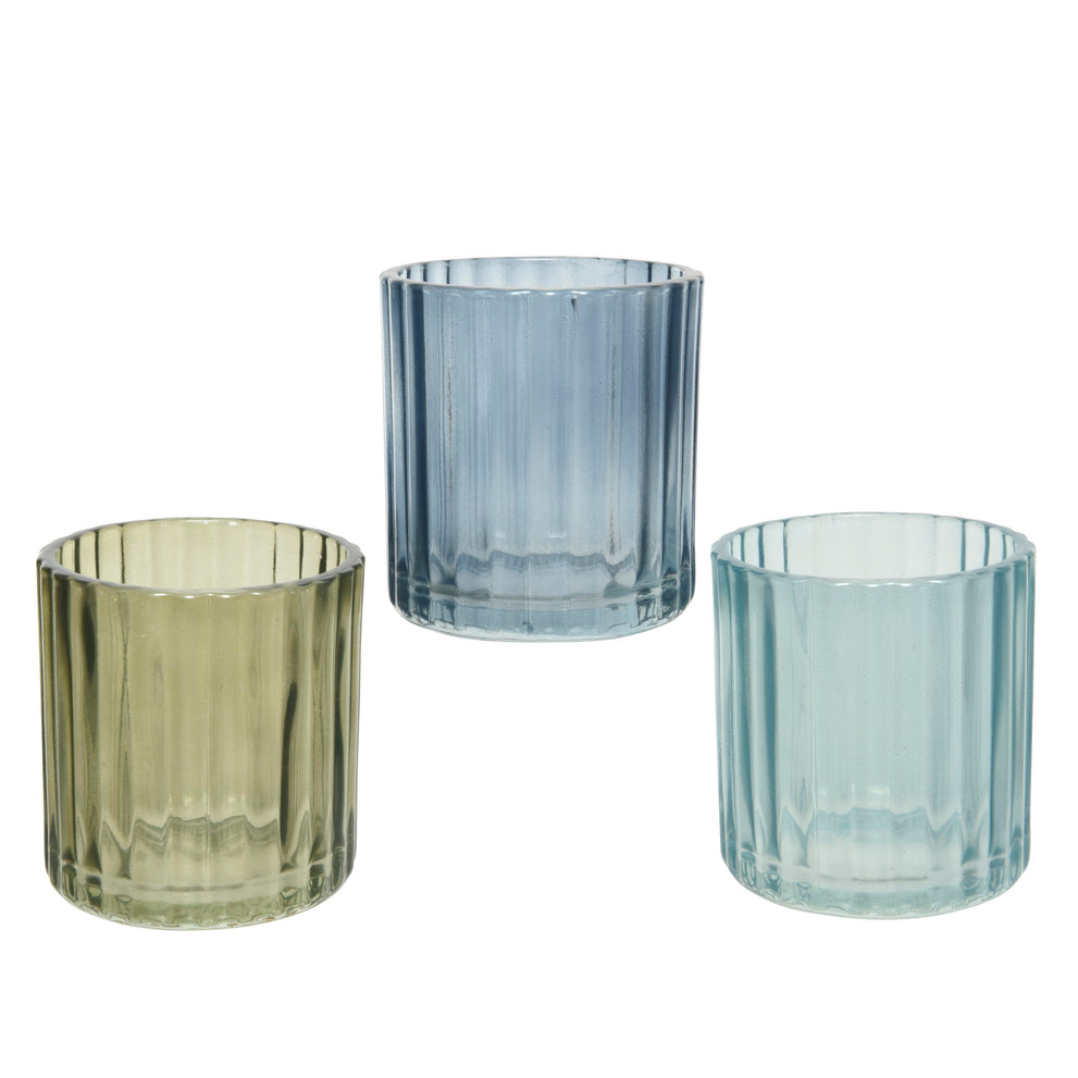 Tea light holder glass opalescent lacquer 3 ass. D7.3 H8cm