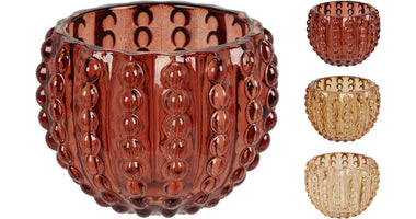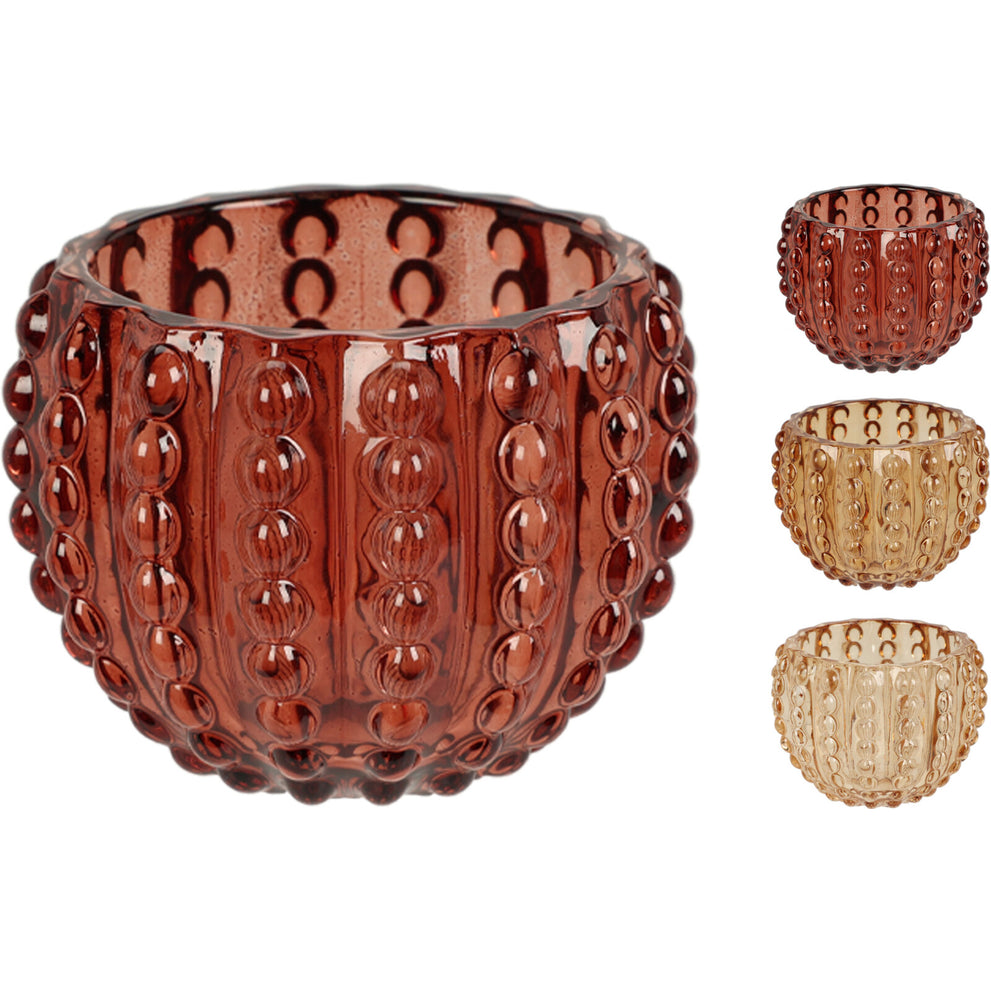 Glass Tealight Holder Ribbed D8 H6cm 3 Assorted Colors