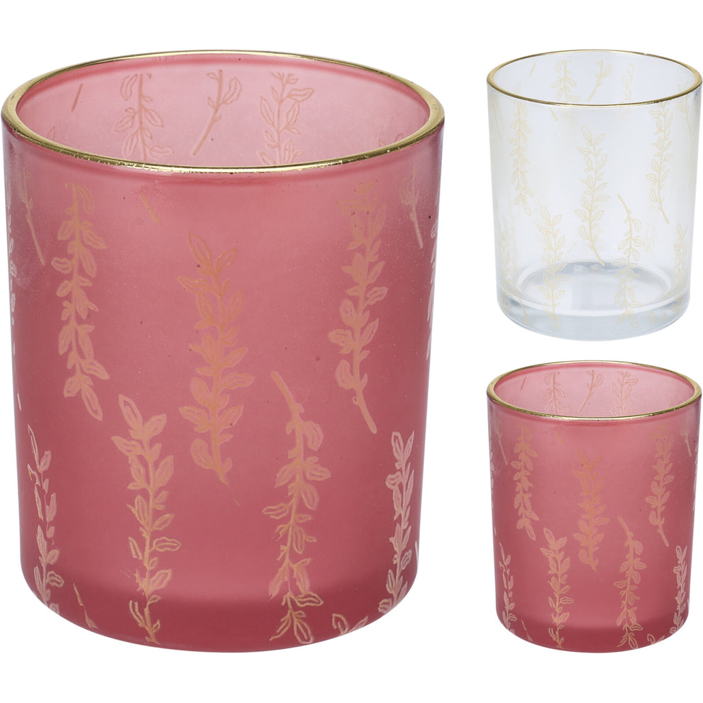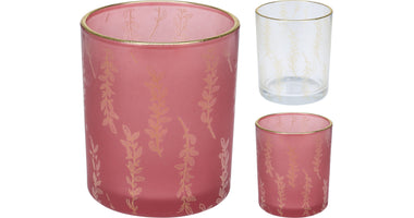 TEA LIGHT HOLDER WITH GOLD PRINT D7 H8CM 2 ASSORTED