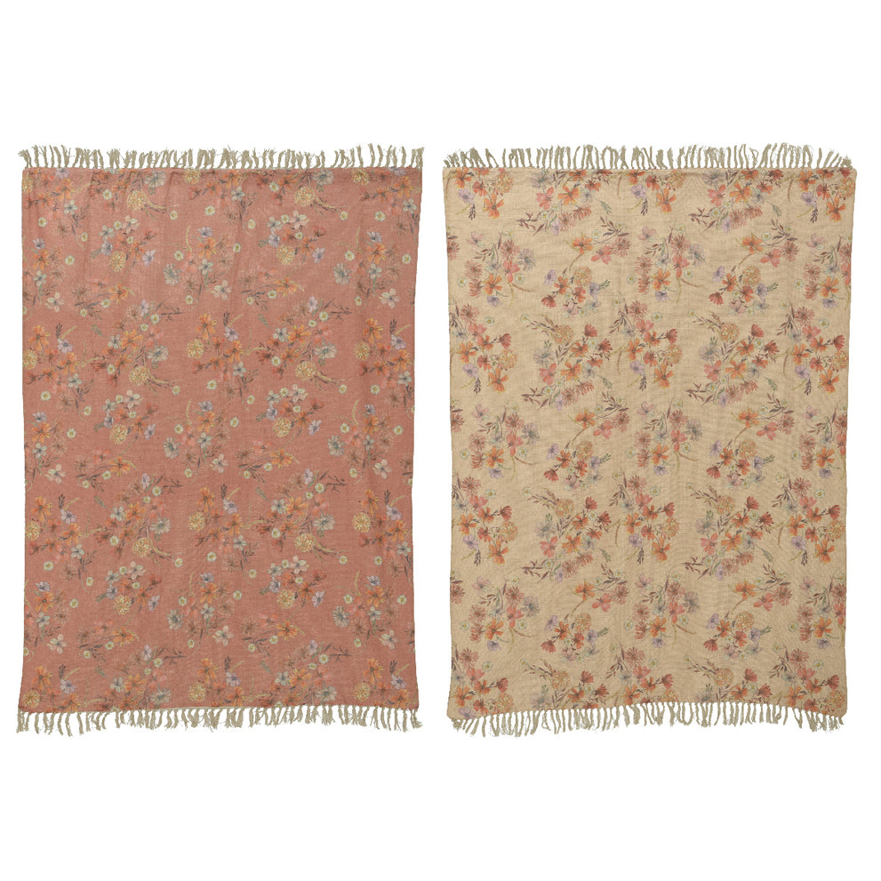 Throw polyester cotton dried flowers with tassels 2col ass 130x170cm