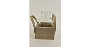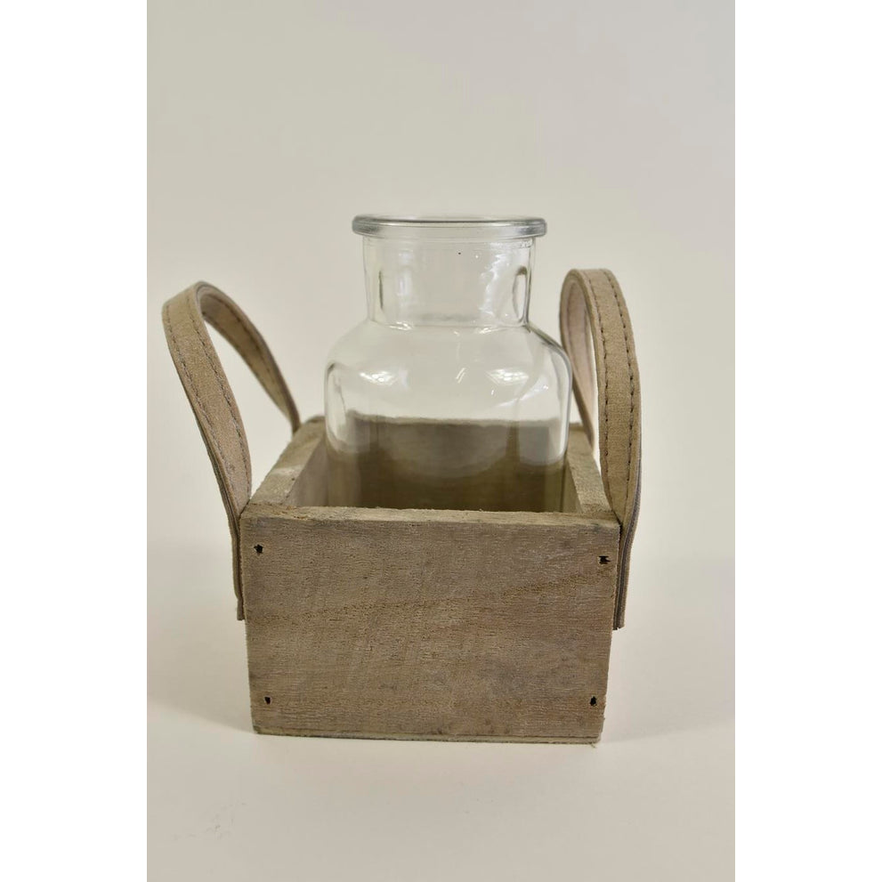 Tray gray with 1 bottle and leather ears gray wash 9x9x12.5cm