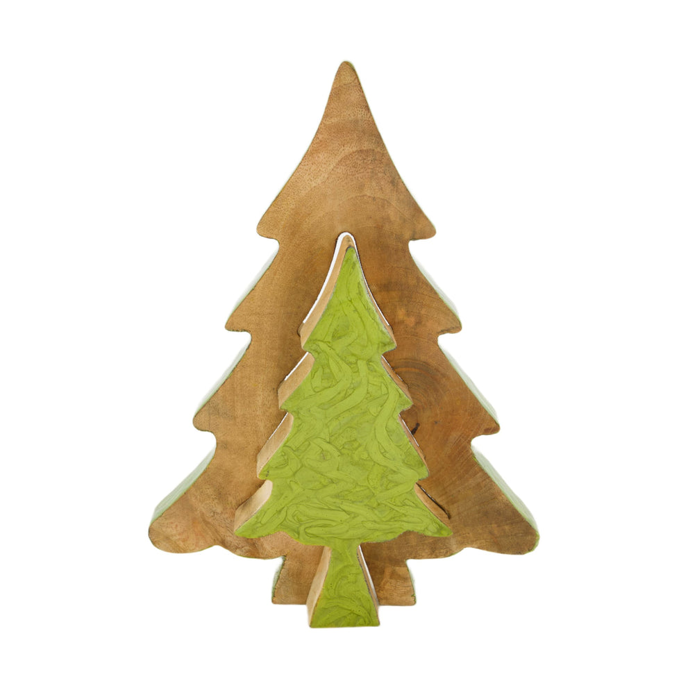 Tree made of mango wood, 23x2.3x31cm, green mix.