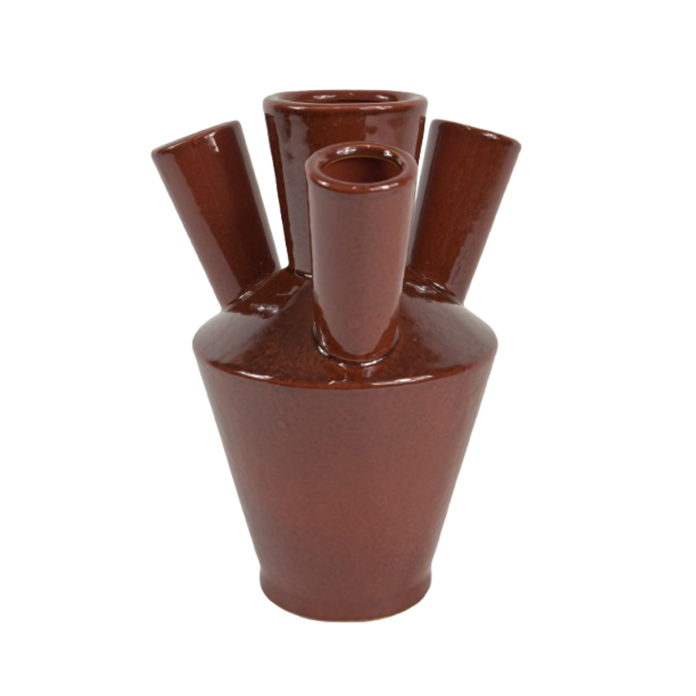 Dinan Ceramic Tube Vase D18 H26cm Warm Red