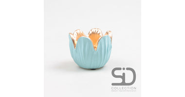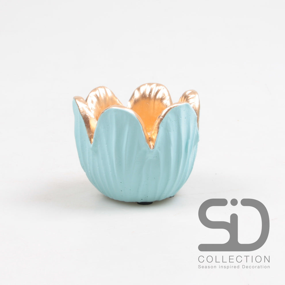 TULIP TEA LIGHT HOLDER CEMENT 8.5X6.5 CM BLUE