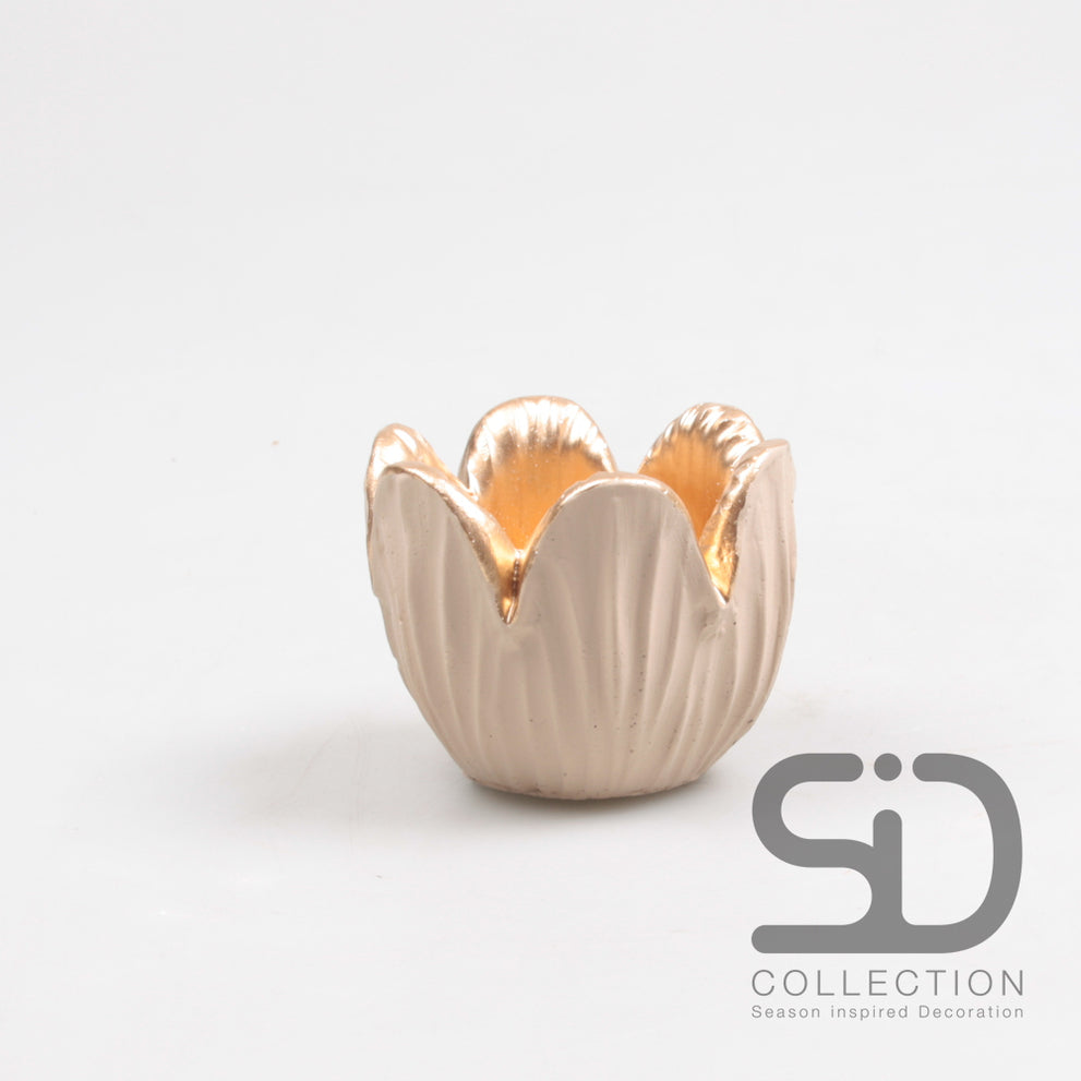 TULIP TEA LIGHT HOLDER CEMENT 8.5X6.5 CM CAMEL