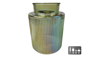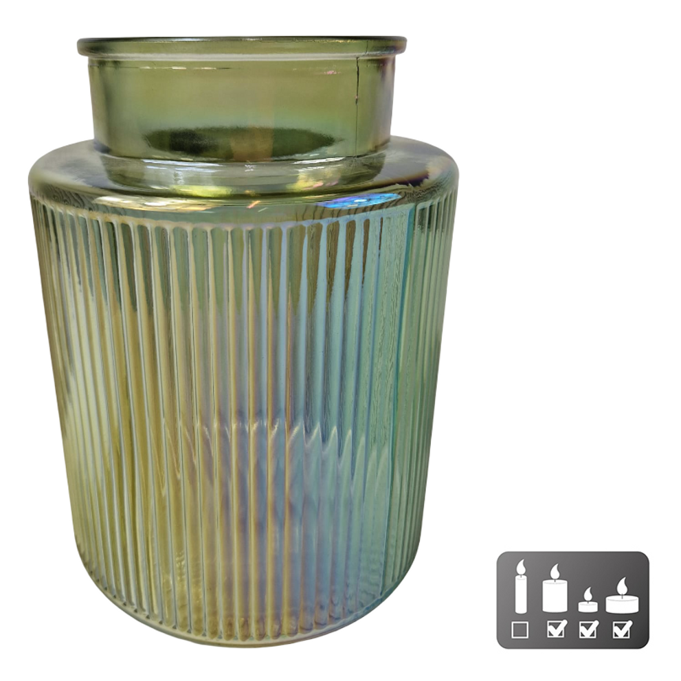 Vase/candle holder "Niamh" S, green glass, 13x13x17cm