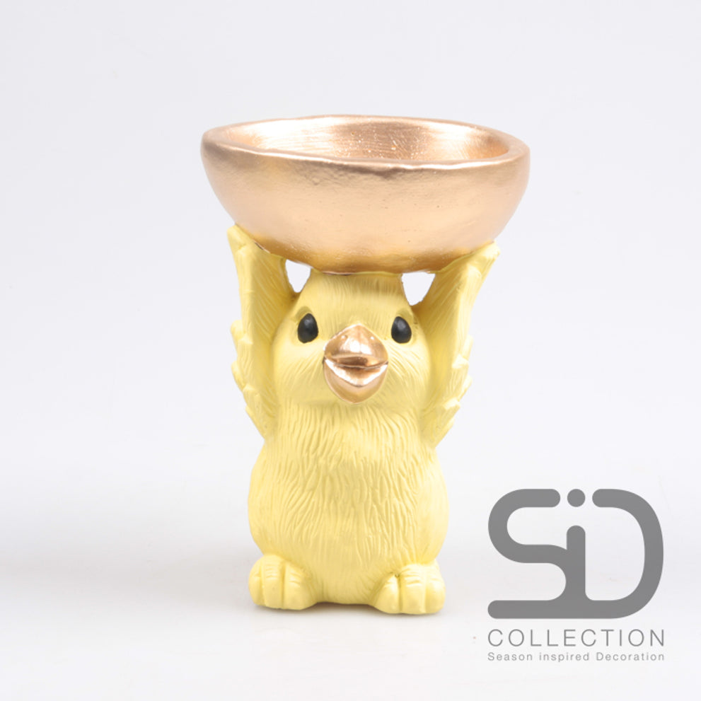 BIRD WITH BOWL CEMENT 19X12X18.5 CM YELLOW