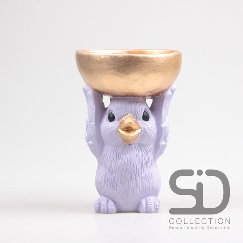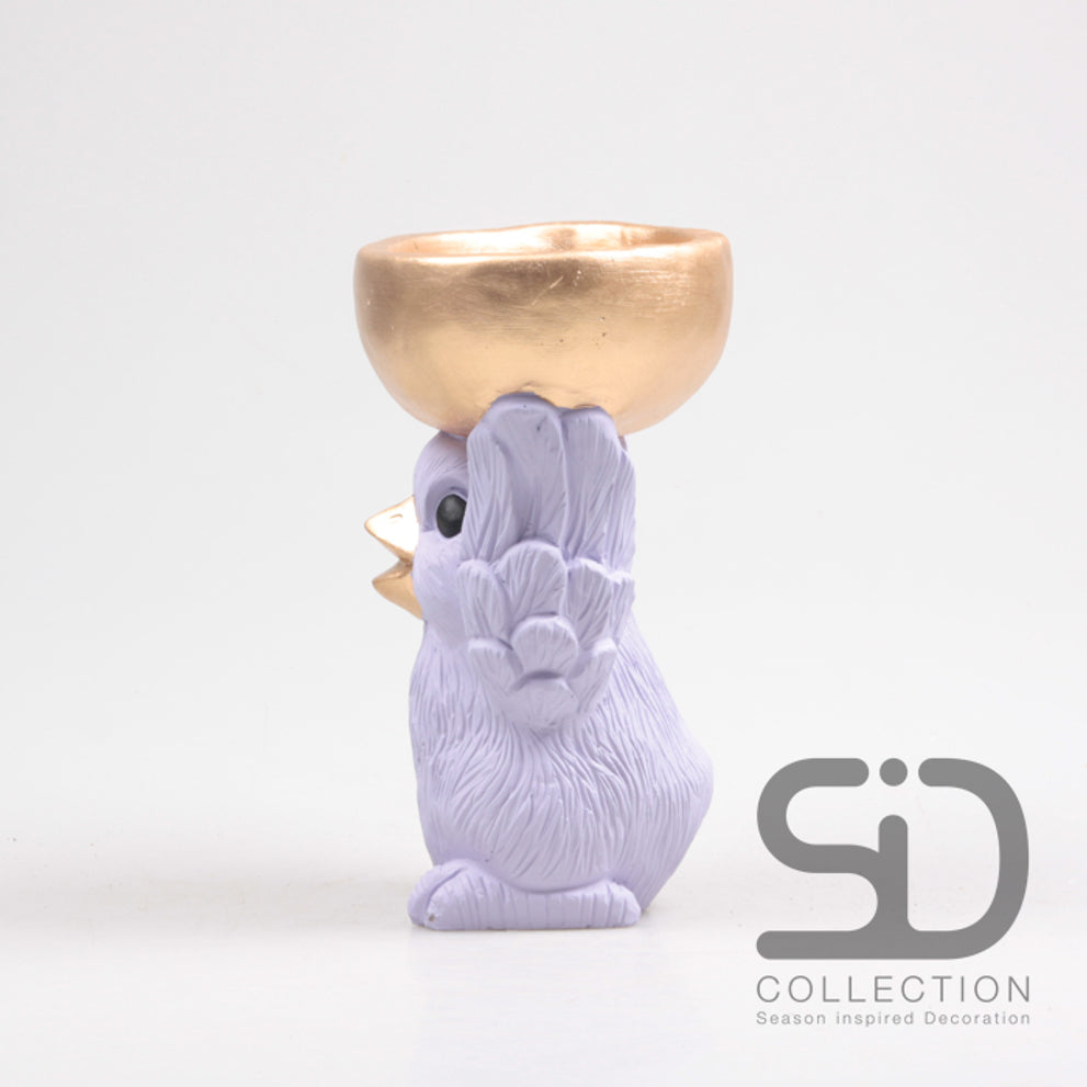 BIRD WITH BOWL CEMENT 22X14.5X22 CM LILAC