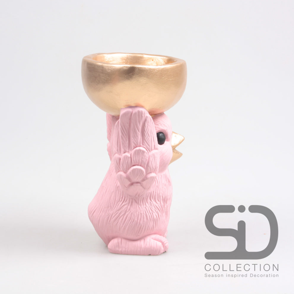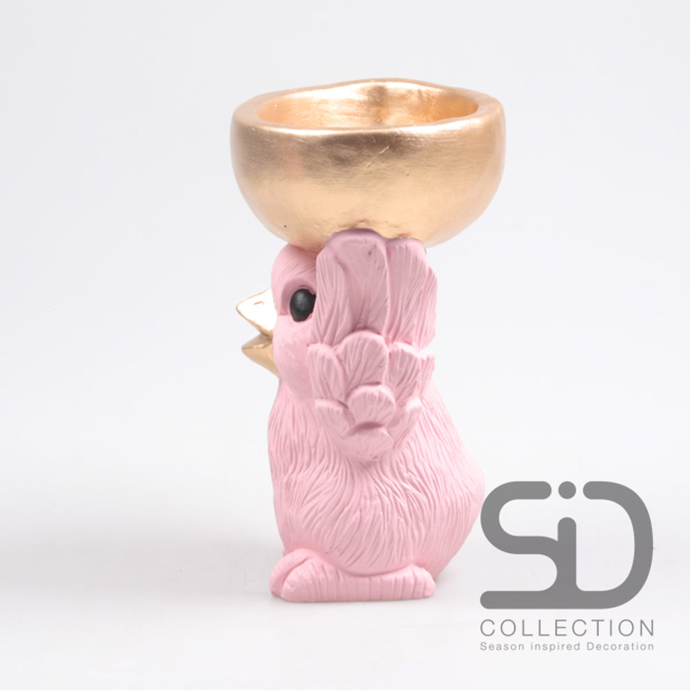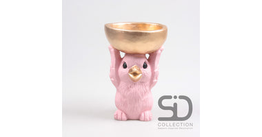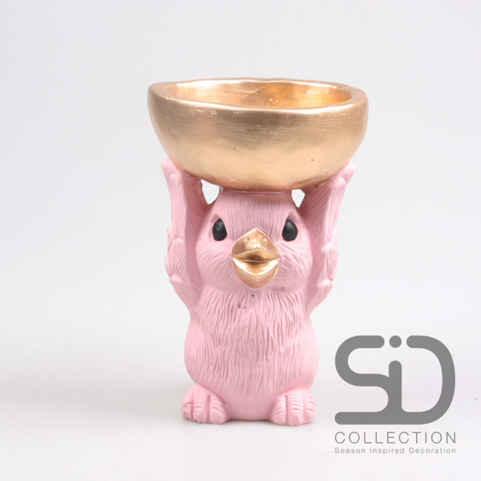 BIRD WITH BOWL CEMENT 22X14.5X22 CM ROSE