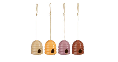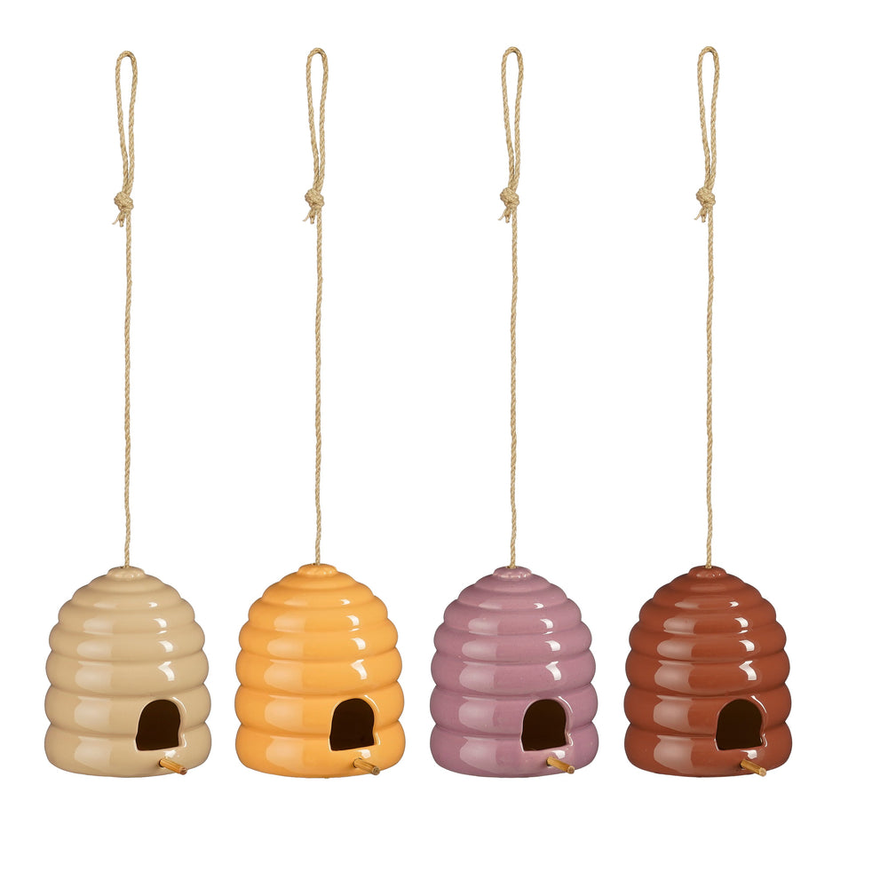 Birdhouse beehive, dark red, dark pink, yellow, cream, 4 assorted - h18xd14cm