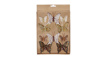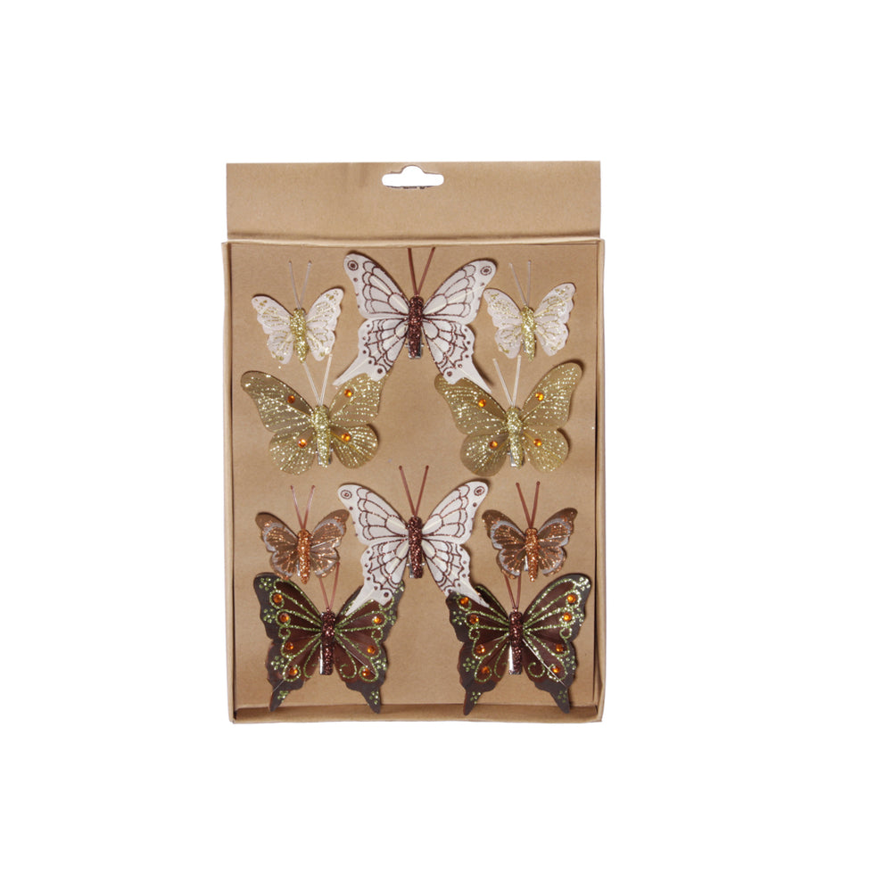 w/b. 10 butterflies/clip 4 assorted brown/gold assorted