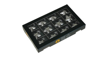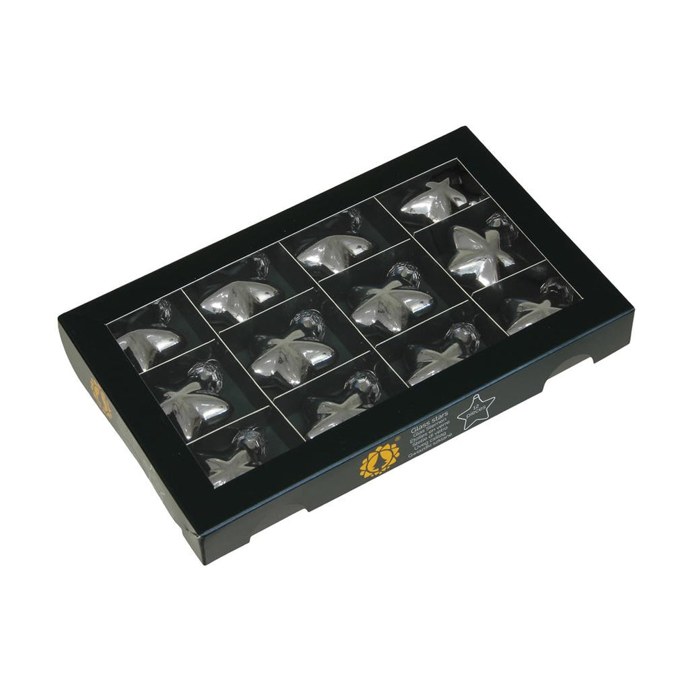 w/b. 12 glass stars/cap silver shiny 40 mm