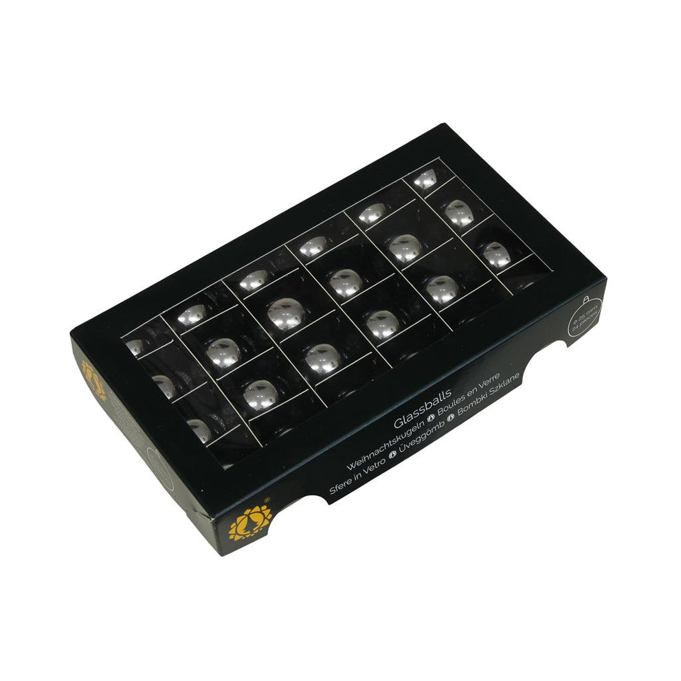 w/b. 24 glassballs/cap silver shiny 25 mm