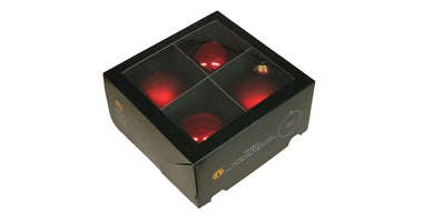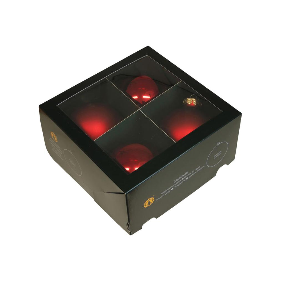 w/b. 4 glassballs/cap dark red combi 100 mm