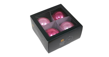 w/b. 4 glassballs/cap pink opal 100 mm