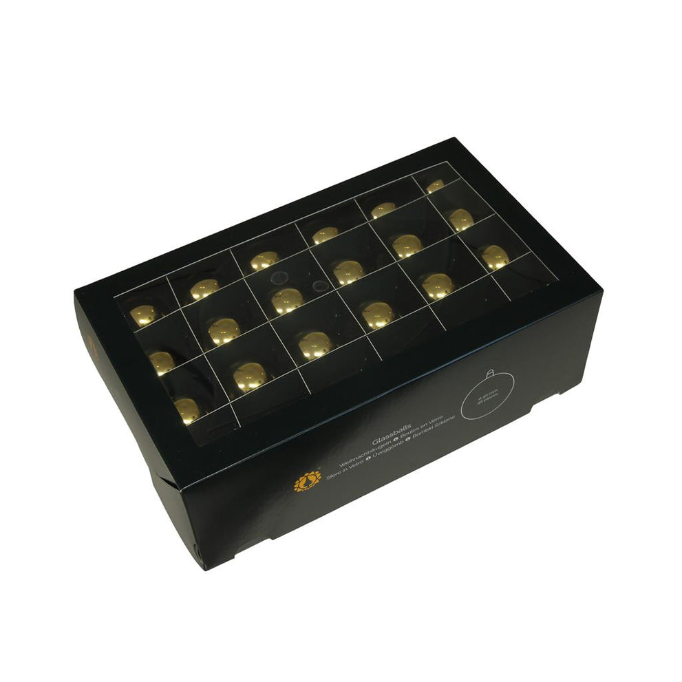 w/b. 48 glassballs/cap bright gold shiny 40 mm