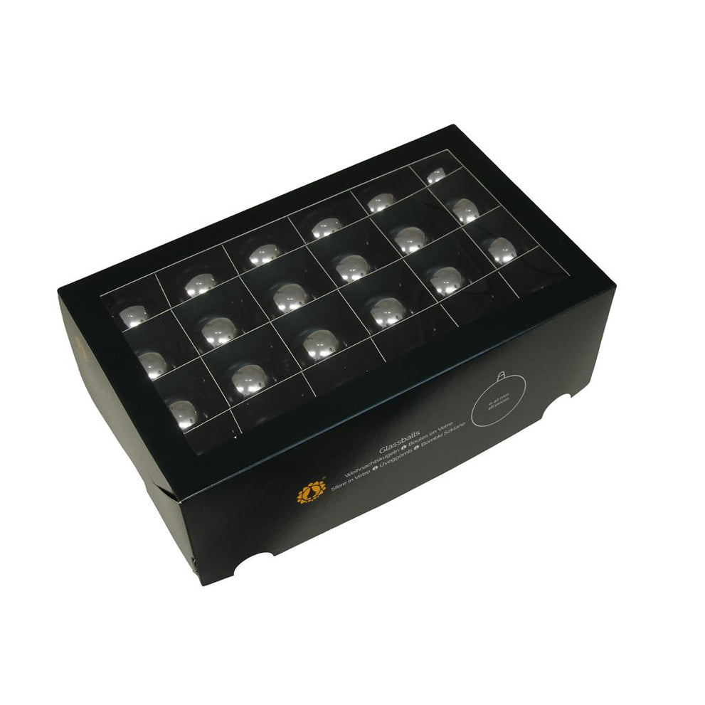 w/b. 48 glassballs/cap silver shiny 40 mm