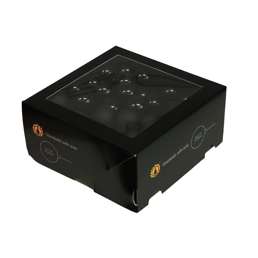 w/b. 72 glassballs/wire black 30 mm