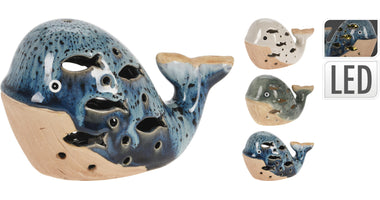 WHALE PORCELAIN WITH LED 16X8X11CM 3 ASSORTED