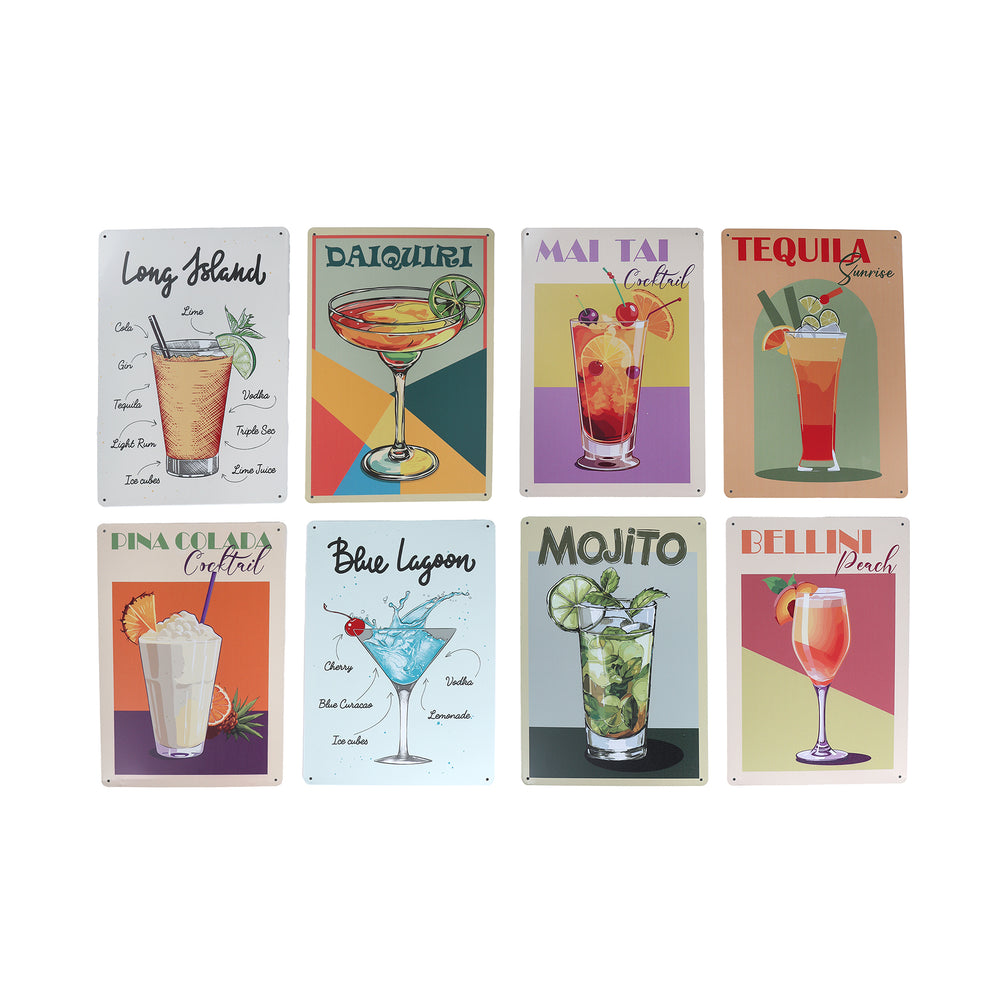 Wall plate "Cocktails" 8 assorted metal 20x30x0.02cm