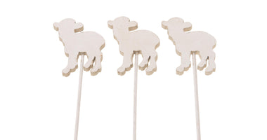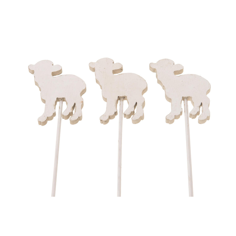 Wooden sheep 10cm o/st 9pc White/Taupe