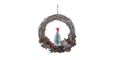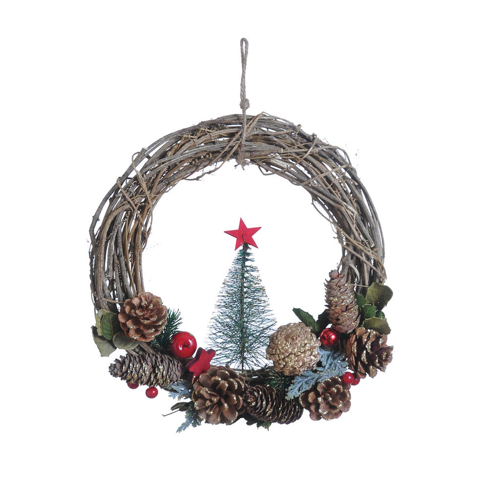 Wreath Pinecone Red Star Rattan Ø30 H8cm Natural/Red