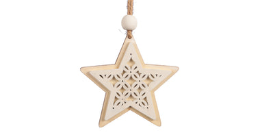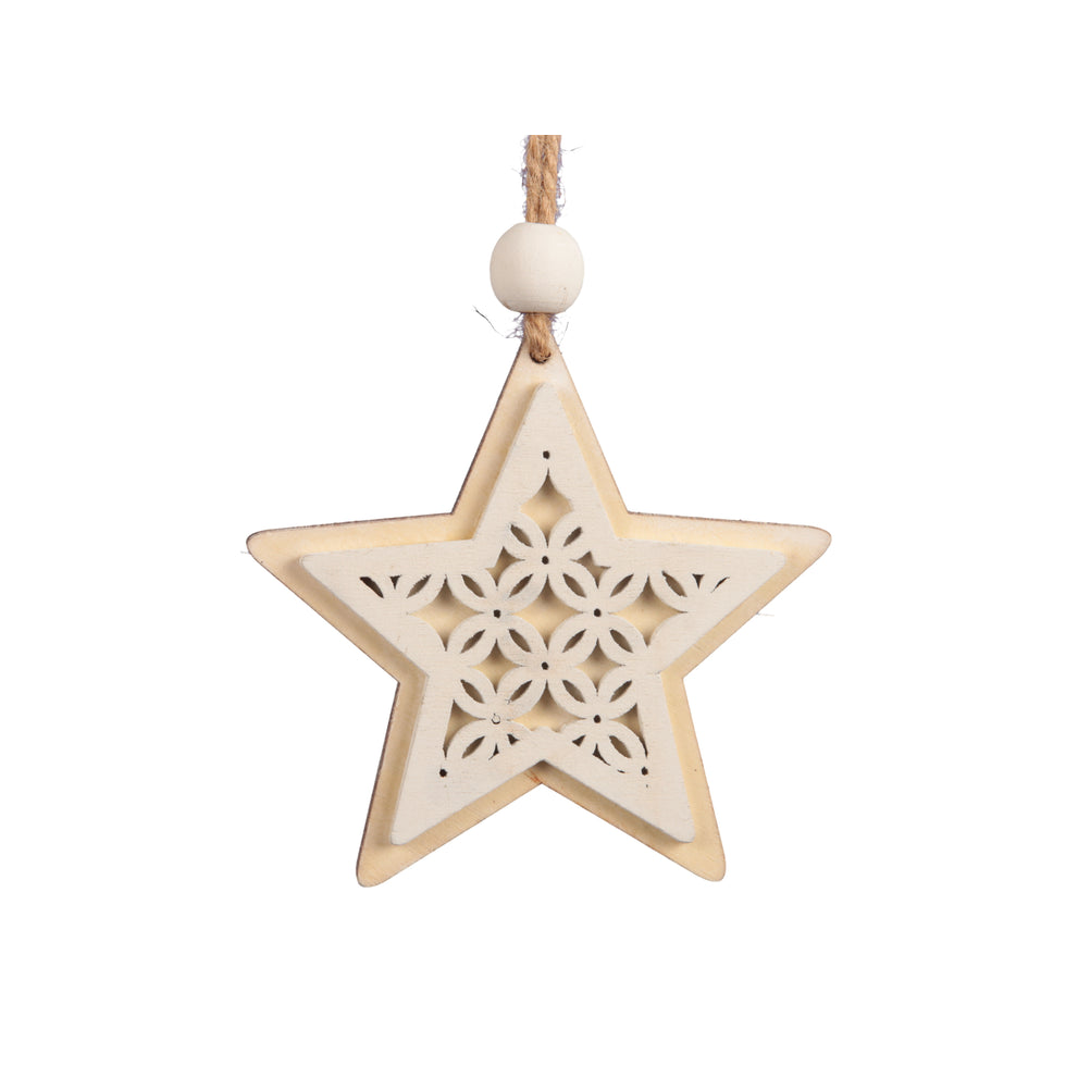 Bag of 8 wooden stars/hanging natural/white 10cm