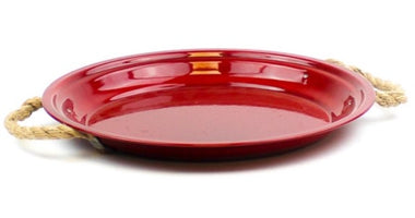 Zinc plateau red w/rope handle h2.5 cm dia 29 cm