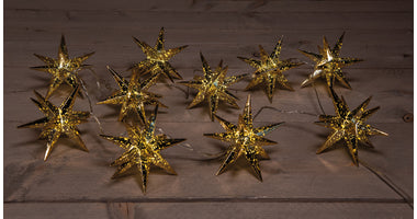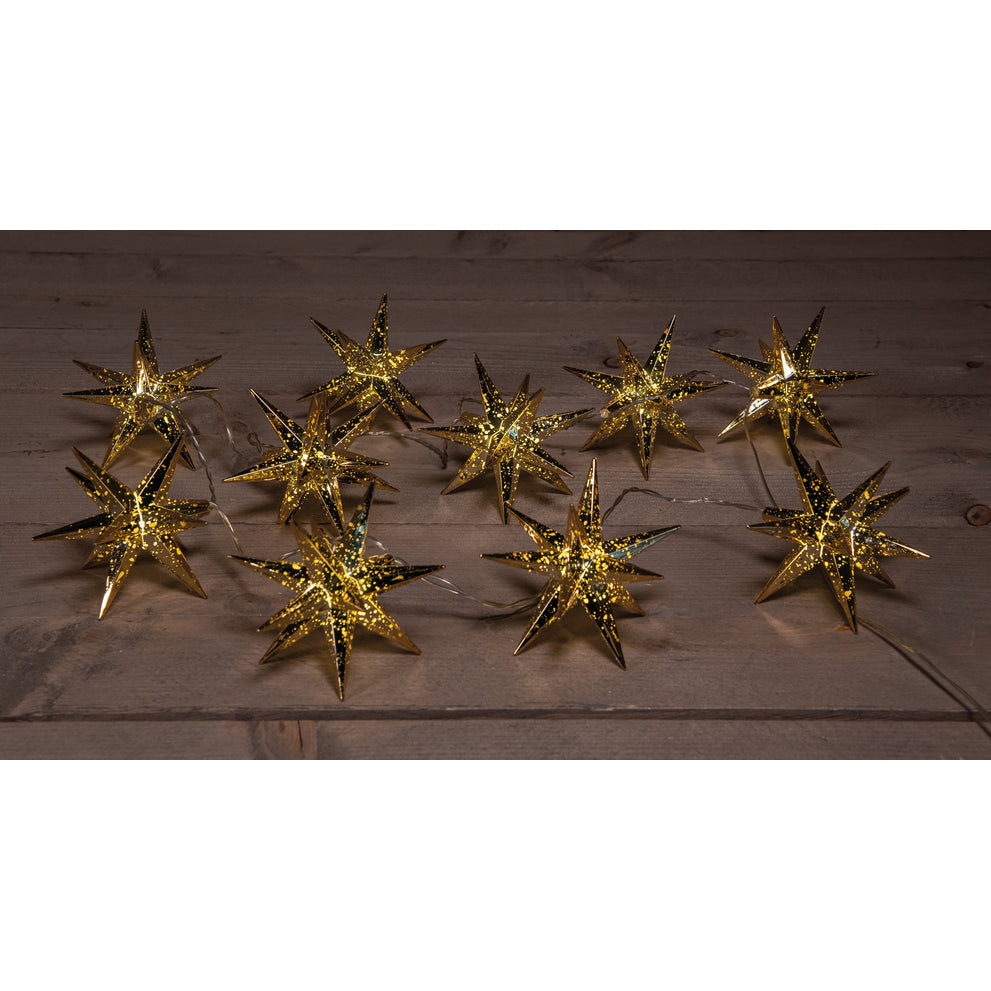 10PCS GOLD 3D STAR 12CM / 10LED WARM WHITE 1,5M / 5M TRANSPANT