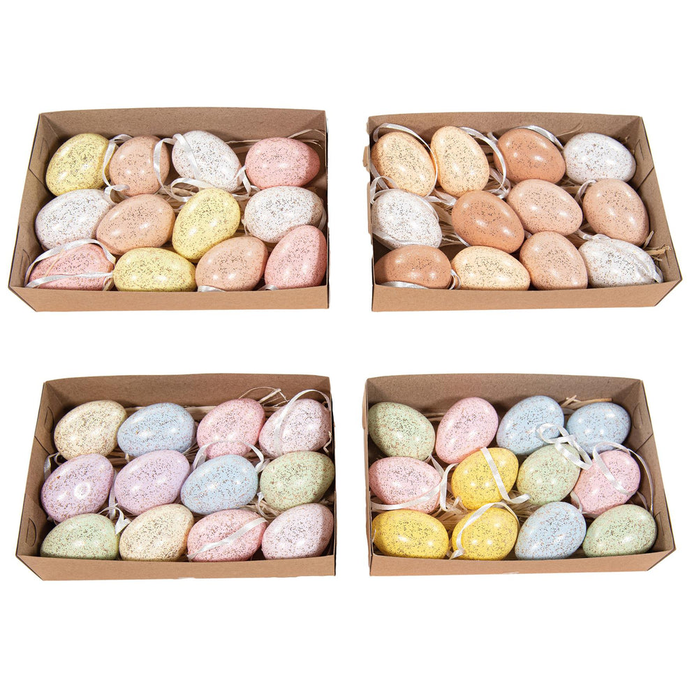 12 EIEREN 5CM MET HANGER MIX KLEUREN IN DOOS - 4 ASSORTI