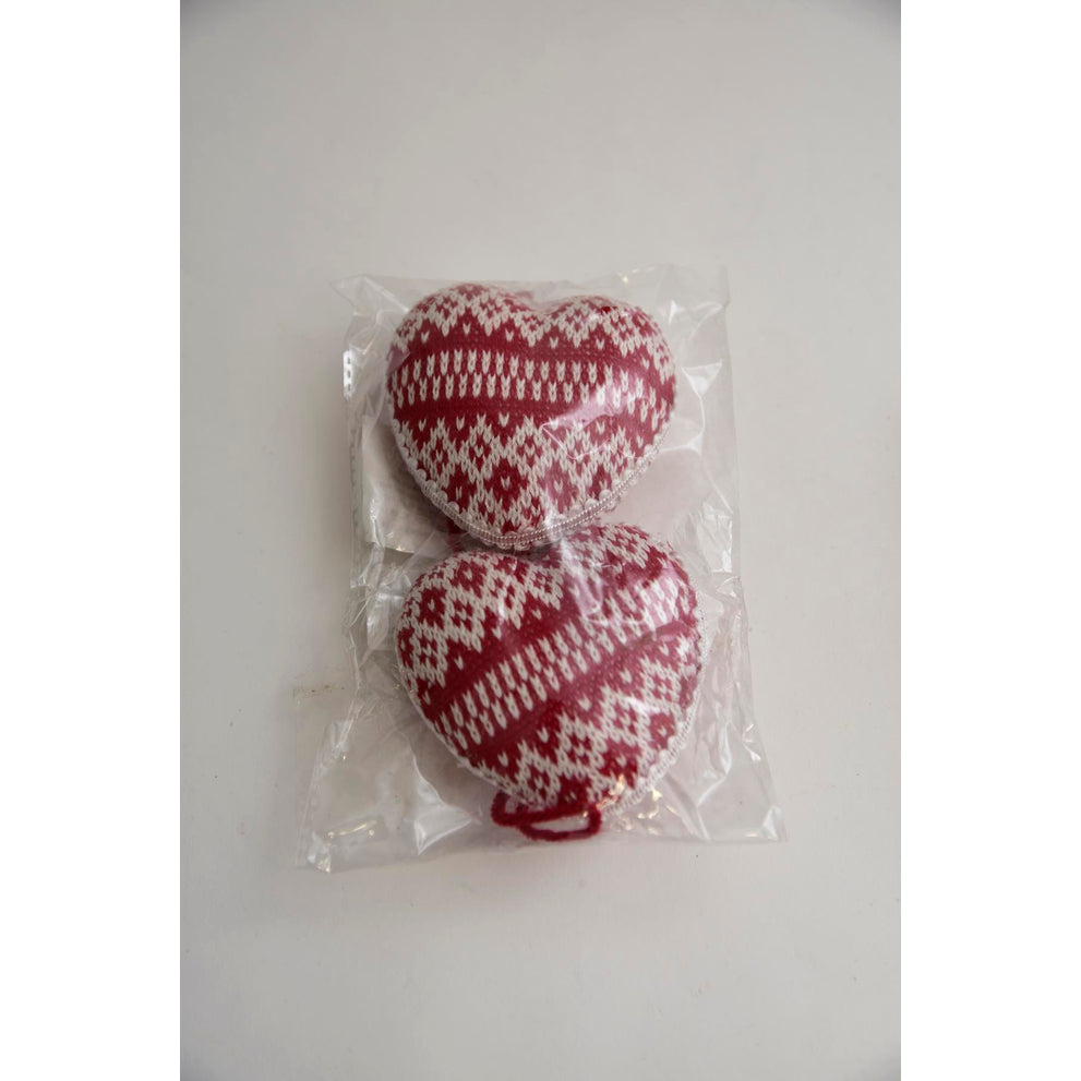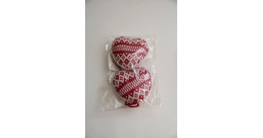 2 gebreide hartjes rood/wit