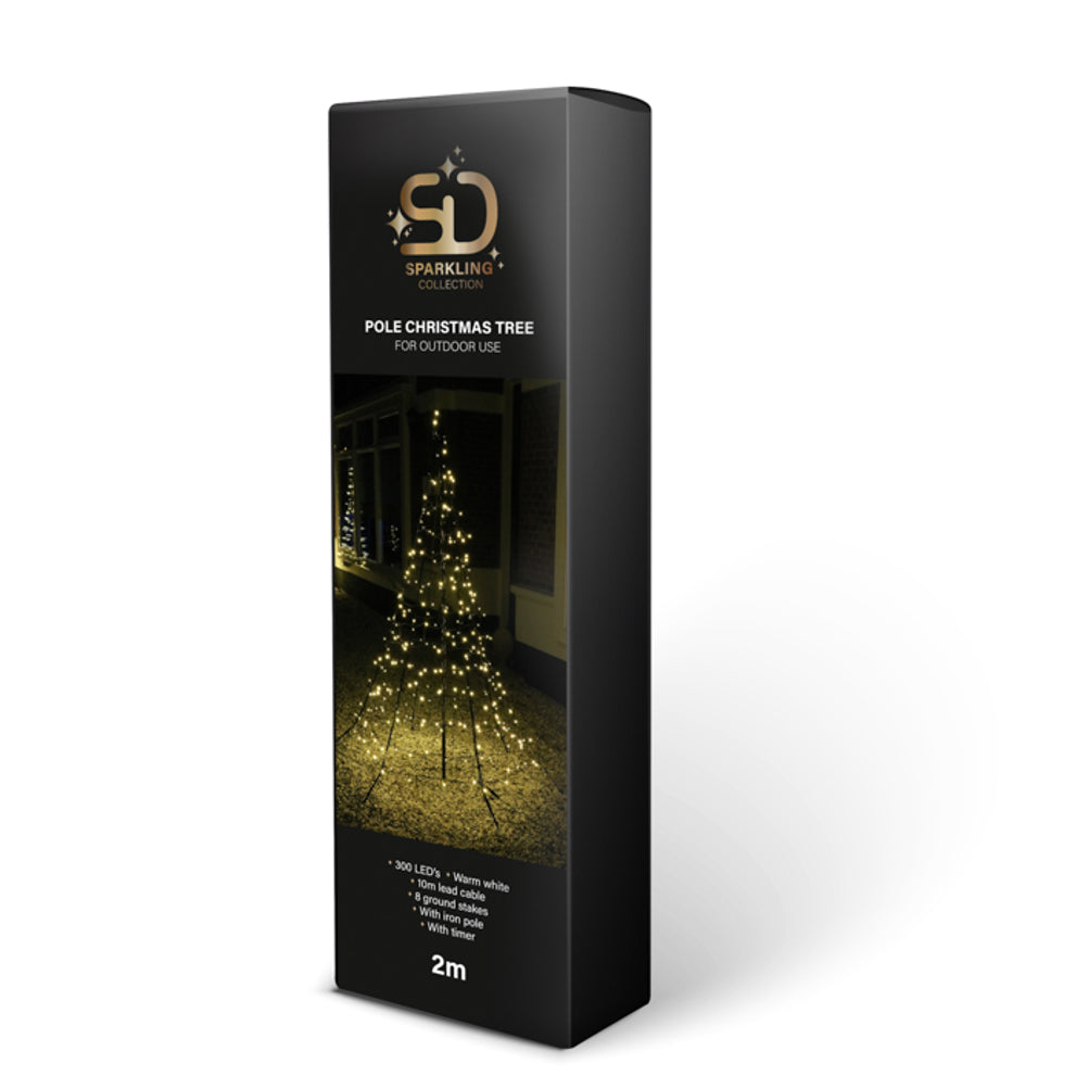 2M VLAGGENMAST KERSTBOOM M/PAAL 300 LED WARM WIT