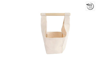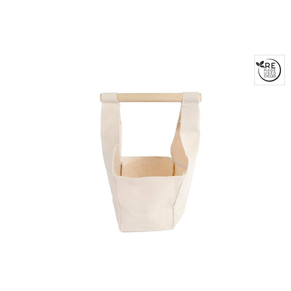 3R Mand "Canvas" met houten greep S crème stof 10x10x25cm