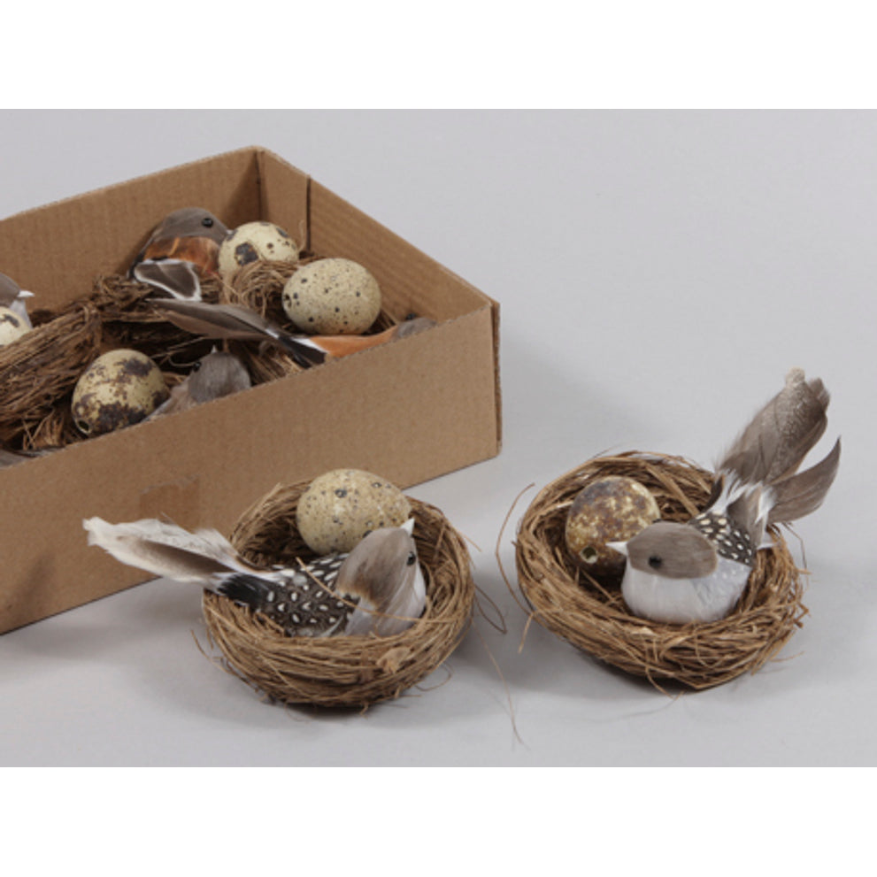 Nestjes met vogels en eieren 7cm - 6 Stuks