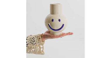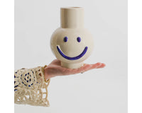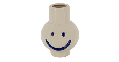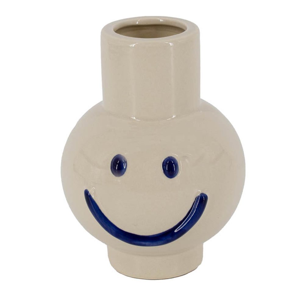 Aardewerk vaas smiley blauw 15,5x15x20cm