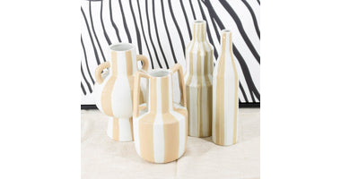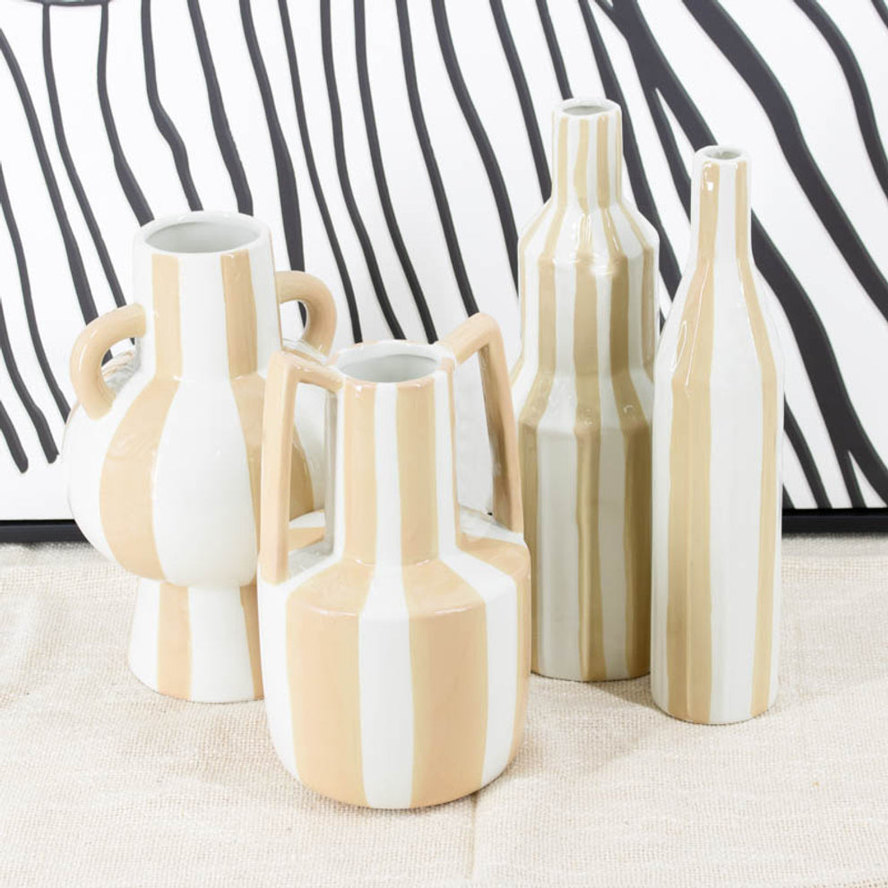 Aardewerk vaas stripe drab 10x10x29,5cm